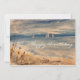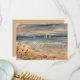 Ocean scene with sailboats in the distance and sandpipers on the beach. Impressionistic painting produces a soothing, calming shore feeling. Beach decor, summer vacation memories.