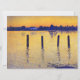 This design features an original painting by Belgian neo-impressionist artist Theo van Rysselberghe (1862–1926). It shows the water of the River Scheldt in Belgium gently rippling as the sun sets. The sky is orange in the distance. The are some houses and trees that can be seen on the far side of the river. In the foreground there are some wooden posts, used for mooring boats, sticking out of the water. There is a single sailboat on the river. It is a calm scene of natural tranquillity. The original artwork was painted in 1892.