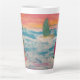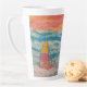 Sailboats sailing in rough ocean water, bright orange sky, whitecaps all around, beautifully hand-painted Latte mug.