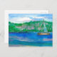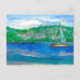 Sailing Alpine Mountain Lake Watercolor Postcard
