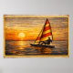 The rich golden tones of the sunset combined with the silhouette of the sailboat create a timeless maritime scene that adds elegance and tranquility