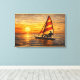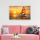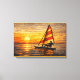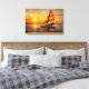 Golden sea sunset sailboat painting, coastal decor. ocean landscape gallery wrap.