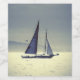 Sailboat off the Coast of California at Huntington Beach with the silhouette of Catalina island in the background.