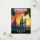 Oahu save the date wedding invitation, travel postcard. Sailing boats on beautiful sunset in vibrant colours.