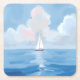 Sailing in Blue | Coastal Sailboat Ocean Painting Square Paper Coaster