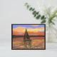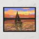 Graphic paintng of a sailboat on the ocean waves at sunrise. Artwork by Magins Creations.