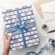 Premium wrapping paper featuring a repeating nautical pattern of sailboats, anchors, waves, and "Sailing Into Retirement" text on navy stripes—perfect for celebrating retirement milestones.