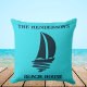 Sailing Navy Blue Boat Family Name Beach House Cushion