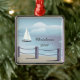 A vector graphic illustration of a sailboat on the water by artist/designer Charmaine Paulson on a Premium Christmas Ornament. The ornament has (customisable) text "Living the Dream".