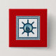 Nautical themed design with sailing scene decoration in striped squares on red background