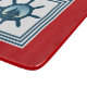 Nautical themed design with sailing scene decoration in striped squares on red background