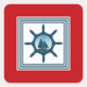 Nautical themed design with sailing scene decoration in striped squares on red background