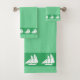 Sailing Yacht on Green Bath Towel Set