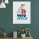 Sailor Bear Boat Waves Nautical Summer Boy Nursery Poster