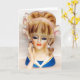Sailor Girl Head Vase Pink Bows Long Blonde Hair Card