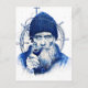 Illustration of a sailor smoking a pipe while holding a wooden ship’s wheel. He wears a knit cap and stands in front of nautical background elements. The artwork focuses on traditional seafaring roles and maritime atmosphere.
