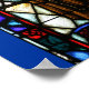 Brightly coloured stained glass image of Saint Anthony shown here as a Franciscan Friar.