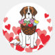 Saint Bernard Cartoon with a Basket Hearts Classic Round Sticker