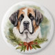 Saint Bernard Christmas Wreath Festive Pup 6 Cm Round Badge