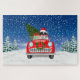 Saint Bernard Dog Driving Car In Snow Christmas Jigsaw Puzzle