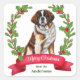 Saint Bernard Dog Holly Banner Christmas Square Sticker