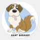 Cute Saint Bernard stickers! A drawing of the canine, pink tongue hanging out, is in the centre with a light blue background. Adorable dog animation made especially for St Bernard owners! Original dog art Copyright © Menagerie Mayhem.