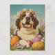 Celebrate Easter with the gentle and majestic Saint Bernard in this vintage-style postcard. Featuring the iconic dog surrounded by pastel Easter eggs, blooming spring flowers, and festive seasonal accents, this design is perfect for Saint Bernard lovers, collectors, and fans of nostalgic holiday art. A heartwarming keepsake to share Easter joy.