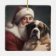 Saint Bernard With Santa Claus Festive Christmas Ceramic Ornament