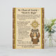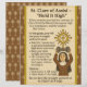The sign includes clear instructions for the game along with options for different age groups: lighter weights for little saints, heavier weights for older saints. A matching monstrance pattern on a brown background ties the design together and complements other saint game signs in the set.