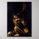 Own a museum-quality print of Caravaggio’s Saint Francis in Meditation, painted circa 1604–1610 and housed in the Museo Civico Ala Ponzone, Cremona. This Baroque masterpiece portrays Saint Francis of Assisi in deep contemplation, kneeling with his head resting on clasped hands, gazing at a crucifix placed on an open Gospel. The painting’s dramatic chiaroscuro highlights the saint’s weathered face and humble brown habit, emphasizing themes of mortality, humility, and spiritual devotion. A skull, symbolising the transience of life, rests nearby, reinforcing the meditative mood. The work reflects Caravaggio’s personal struggles following his 1606 exile, with some scholars suggesting the saint’s face bears the artist’s own features, symbolising his search for expiation. Commissioned possibly by Monsignor Benedetto Ala, protector of Caravaggio, this painting is a profound expression of faith and introspection. Perfect for collectors and art lovers seeking iconic Italian Baroque religious art and emotional depth for their home or office.