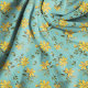 Yellow floral pattern fabric featuring the medicinal herb, St. John's Wort. A pretty blue-green background with blooms, buds and leaves is printed on your choice of cotton, linen and polyester blend materials.