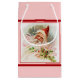 Small pink glossy gift bag with a beautiful vintage image, on the front and back, of Saint Nicholas amid holly and pink ribbons. Red borders. See the entire Holiday Gift Bag collection in the PARTY FAVORS section.
