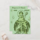 A traditional Catholic prayer card honoring Saint Patrick, apostle of Ireland and servant of Christ. The front features a vintage-style illustration of Saint Patrick in blessing, rendered in soft green tones with subtle shamrock accents. The back contains an original devotional prayer asking for faith, courage, humility, and devotion to the Holy Trinity.
