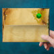 Elegant,classy envelope for St Patrick's Day with vibrant gem stone and green damask flowers on aged parchment..Cool and original design easy to customise with your initials and own text as St.Paddy's Day ( St. Patty) Party announcement ,wedding ceremony,place cards,save-the-date, thank you cards,bridal showers, birthdays, parties,engagement showers, or just about any event you wish! Very accurated nurbs modelling and rendering by Bulgan Lumini (c) .Part from series Hyper Talismans.
