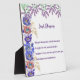 Flower collage decor 'Home Accent Irish Blessing Plaque' for Saint Patrick's Day. The illustration has a floral collage of lilac and pansy flowers amidst greenery on a white background. The TEXT is easily customisable with your choice of Irish/Any Blessing. The words and calligraphy can be changed.