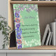 Flower collage decor 'Home Accent Irish Blessing Plaque' for Saint Patrick's Day. The illustration has a floral collage of lilac and pansy flowers amidst greenery on a green shamrock background. The TEXT is easily customisable with your choice of Irish/Any Blessing. The words and calligraphy can be changed.