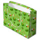 Beautiful Saint Patrick's Day pattern featuring heart, shamrock and Happy Saint Patrick's Day wish in the Irish flag colours, as well as green heart and coin with green shiny gold framed shamrocks.