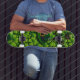 Ride with the luck of the Irish on the Saint Patty's skateboard this vibrant design features an adorable black cat dressed in a full dapper leprechaun suit complete with a green top hat and gold buckles set against a lush backdrop of cascading four leaf clovers and a giant green hat this deck is the perfect blend of festive fun and cool feline