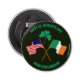 Saint Patrick's Day proud Irish American bottle opener is a product to celebrate Irish heritage. You can offer it as a gift at Saint Patrick's Day celebration or wear it to show how festive and proud you feel. The button has a couple of shamrocks and top hats with colours associated with Ireland and USA. You can change the text and pick another background colour.