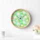 Celebrate St Patty's Day in style with this pretty, modern-looking shamrock pattern round wall clock design. The 4-leaf clovers are white with splashes of yellow and blue on a green background with a painted - slightly retro tiedyed - look. The four clock numbers are orange and an orange circle helps to mark the time. Display this fun, lucky clock for Saint Patrick's Day or all year if you love clovers.