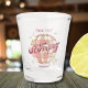 Saint St Tropez France, Retro Vintage Design featuring a disco ball in pink, and apricot peach hues on white background. This beautiful shotglas is a perfect gift or souvenir for Saint St Tropez residents, visitors, tourists or fans.