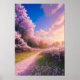 A route opens up in front of you, leading you on a trip to the golden embrace of the setting sun. You are enveloped in a stunning panorama of natural beauty as you stroll along this trail. The path is lined with cherry blossom trees, their limbs filled with exquisite pink petals that wave softly in the air. The walkway beneath your feet is carpeted with fallen sakura petals, as if nature herself has woven a colourful tapestry for your trip.