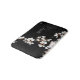 Sakura flowers of white colour against the black background. Sakura is a Japanese cherry tree. The season of of sakura blossoming is known as Hanami - the festival of enjoining of the beauty of sakura in full bloom.