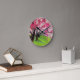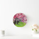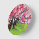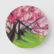 Japanese art clock with original art design from watercolour painting by Sacha Grossel of Japanese Sakura Cherry Blossom landscape with pink and white Cherry Blossom flowers in a Japanese park with bright blue sky. This detailed, bright colorful and beautiful design is inspired by Japanese art themes for botanical flower lovers everywhere