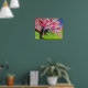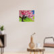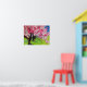 Poster with original art design from watercolour painting by Sacha Grossel of Japanese Sakura Cherry Blossom landscape with pink and white Cherry Blossom flowers in a Japanese park with bright blue sky. This detailed, bright colourful and beautiful design is inspired by Japanese art themes for botanical flower lovers everywhere.