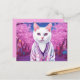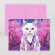 Postcard featuring funny fantasy art. A jazzy kitty in a stylish cardigan is among the blooming cherry trees. Great for anyone who loves modern kitties and humour and sakura ,spring theme.
