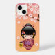 Sakura Kokeshi Doll - Geisha Girl on Peach iPhone Case