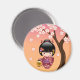 Sakura Kokeshi Doll - Geisha Girl on Peach Magnet