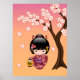 Sakura Kokeshi Doll - Geisha Girl on Peach Poster