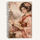 A notebook featuring a woman against sakura blossoms.